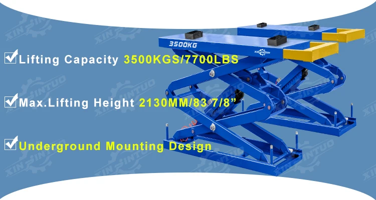 underground scissor car lift specification Lifting Capaciy 3,500KGS(7,700LBS) Lifting Height</