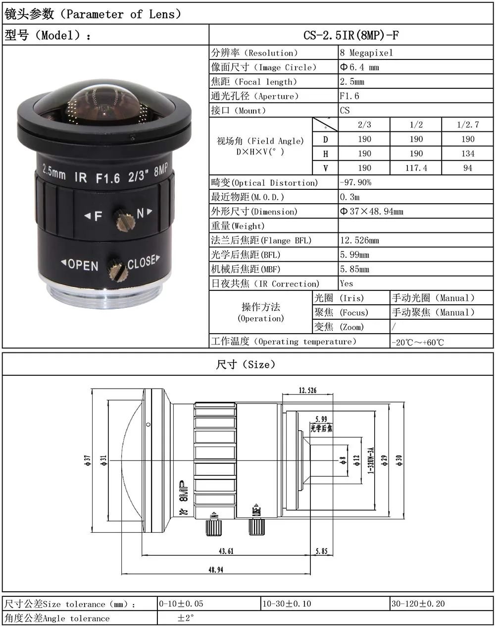 Model Number: Fisheye-8MP-2.5mm-FG