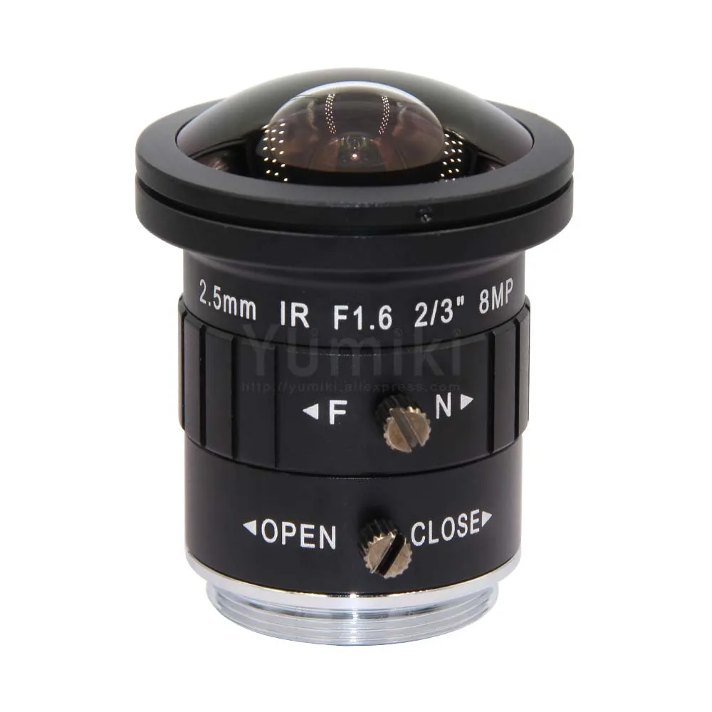 Yumiki 2.5mm 4K 8MP 2/3" F1.6 IR Fisheye Wide Angle View CS Mount Mono-focal CCT